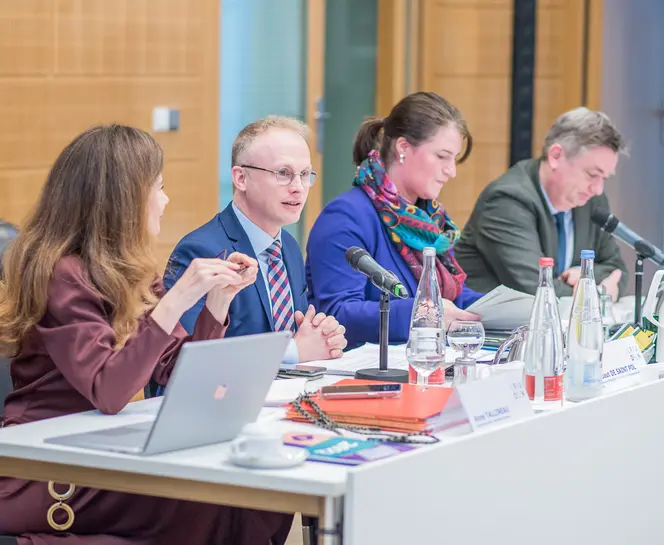 La session était présidée par Thibaut de Saint Pol de la Direction de la Jeunesse, de l’Éducation Populaire et de la Vie associative (DJEPVA) pour le ministère de l'Éducation nationale et de la Jeunesse (MENJ) et Jana Borkamp, directrice du département "Enfance et jeunesse" au ministère allemand de la Famille, des Personnes âgées, des Femmes et de la Jeunesse (BMFSFJ).